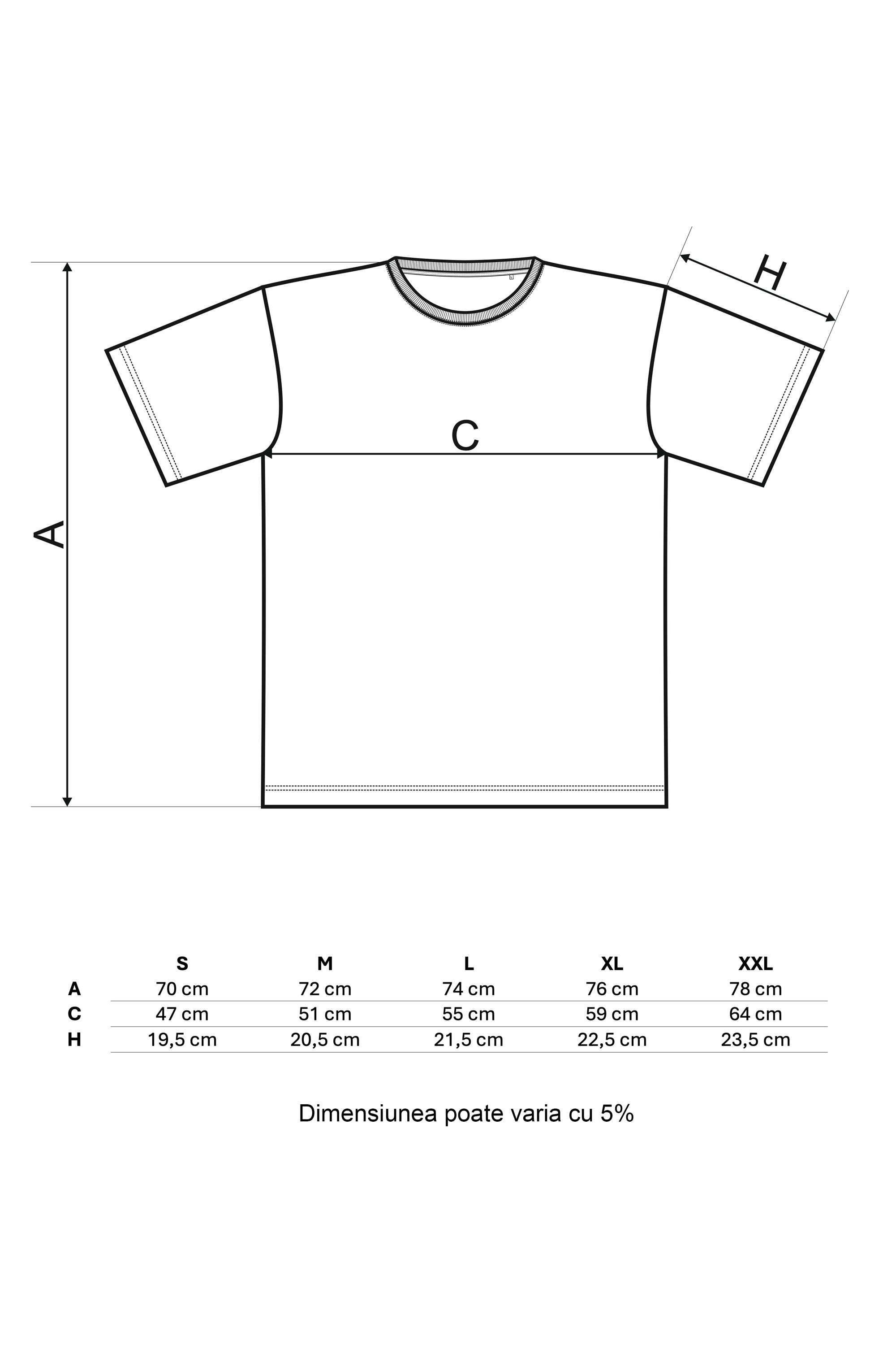 • C – Talie: măsurată pe orizontală, în partea cea mai lată a tricoului.